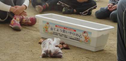 法務省の関連団体である「人権啓発活動大阪地域ネットワーク協議会」のサポートをいただき、1年生がチューリップの球根をプランターに植えました。
