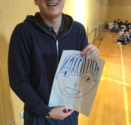 描く場所を分担して、一つの似顔絵を完成させていきます。