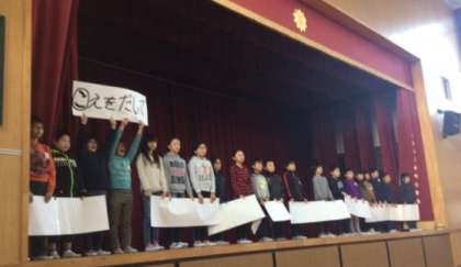 全校朝会で代表委員のみんなが全校の子どもたちに呼びかけました!