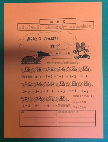 「あいさつがんばりカード」で、子ども自身で、毎日のあいさつについて、振り返ることができるようにしました。