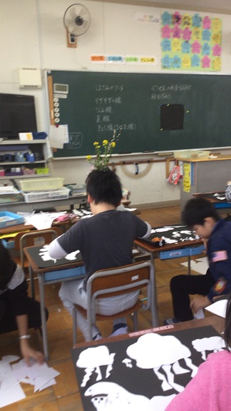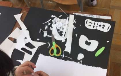黒い紙の上に、思い思いの形をのせていきます。