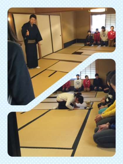 武者小路千家官休庵流の佐伯江南斎先生とご子息で本校の前PTA会長でもいらっしゃる佐伯久徳先生に茶道体験の講師をしていただきました。