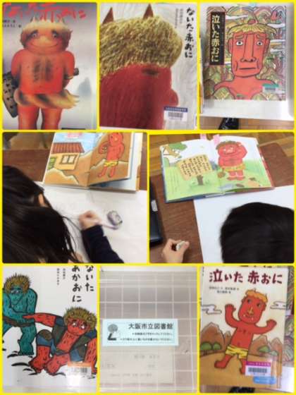 教室の中には、いくつも違う出版社の「泣いた赤おに」がありました。