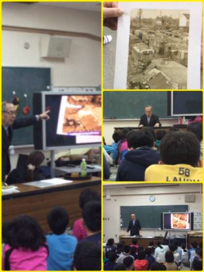 公益財団法人「真田山陸軍墓地維持会・常務理事」とNPO法人「旧真田山陸軍墓地とその保存を考える会・副理事長」でいらっしゃる吉岡武さんに講師をお願いして、5年生の平和学習を実施しました。