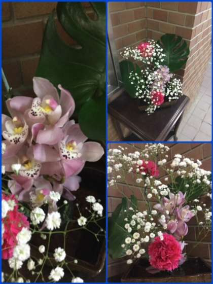モンステラ・かすみ草・カーネーション・シンビジウム