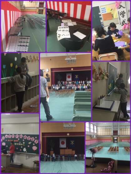 新2年生と新6年生が登校して、明日の入学式の準備をしました。