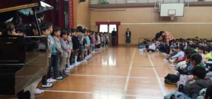 全児童の6分の5ほどの子どもたちの歌声のはずです。