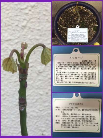 去年の修学旅行で、子どもたちが広島から持ち帰った「被爆あおぎり」です。