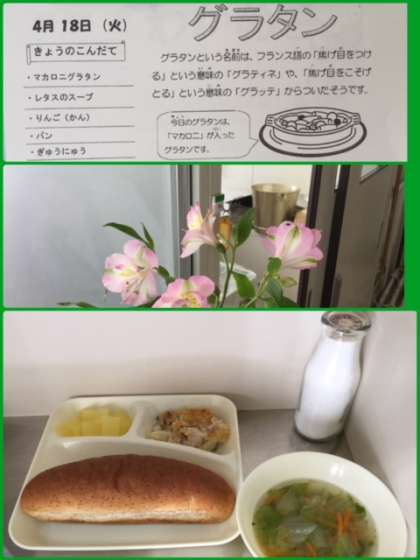 4年生のクラスの前にはきれいな花が飾ってありました。