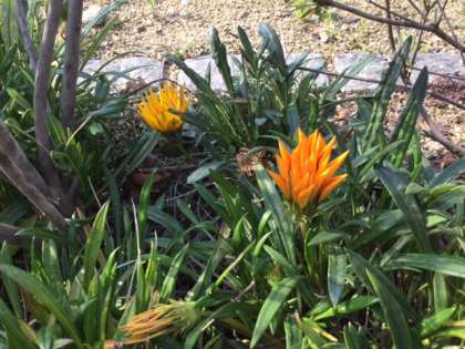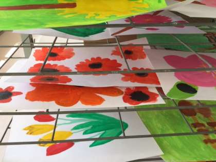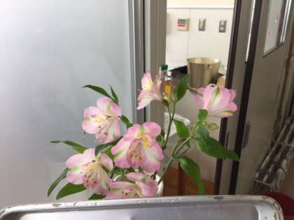 校庭に花が咲いています。校舎の中にも花が・・・・