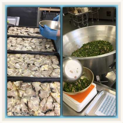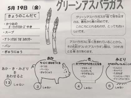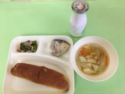 かつおはにんにく、マヨネーズ、塩コショウで下味をつけオーブンで焼いたどちらもパンに良く合う献立です。