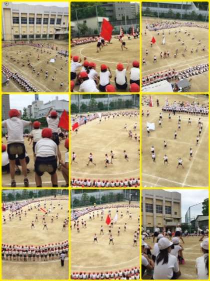 開会式・閉会式の練習、応援合戦・大玉ころがしの練習です。