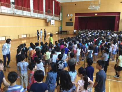 毎週月曜日の全校朝礼。朝礼が終わり、子どもたちが体育館から教室へ向かうとき、