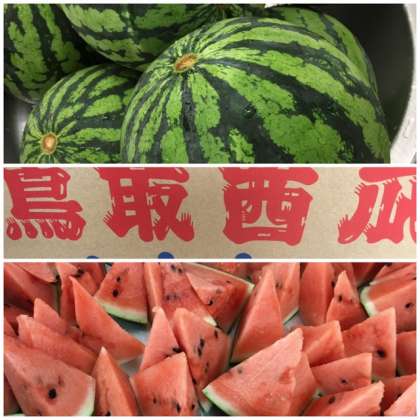 完熟したもので苦味もなくむしろ甘味がありおいしいと言って食べている子がたくさんいました。デザートには鳥取からスイカが9玉届きました。給食では大きさや味の偏りをなすため1玉を64等分に切り分けます。とても甘くておいしかったです。