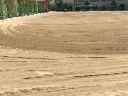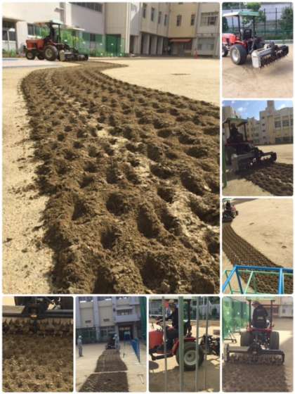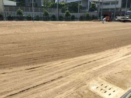 まぅ、地面を浅く掘り起し、その後砂を入れ、整地をしていきます。