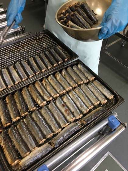 さんまはオーブンで焼きさんしょう風味のしょうゆダレわかけていただきます。低学年は骨を取り除くのに時間がかかってしまい食べる時間が短くなってしまいますがみんな頑張って食べていました。