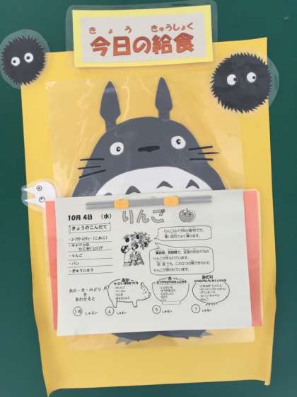 調理員さんがクラスに1つずつラッキーうさぎりんごを入れて下さいました。