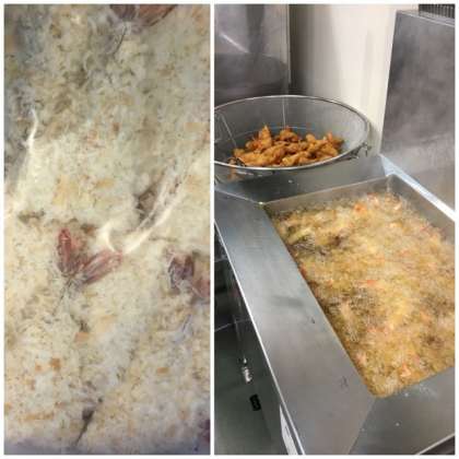 給食に登場するえびフライは製品ですが開きの状態なので珍しい形をしています。普段お家で目にするのとはちょっと違う形をしたえびフライに驚いた顔をしている子もいましたよ。