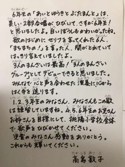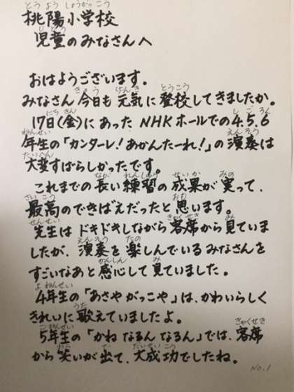 17日の発表については、桃陽小に何回も来て子どもたちを指導してくださった