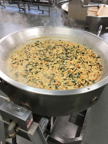 ごまだれ焼きは、豚肉と玉ねぎ、ピーマンに練りごま、砂糖、みりん、こい口しょうゆで下味をつけ、いりごまをふりオーブンて焼きます。ごはんにとてもよく合う一品です。おひたしは冬が旬のきくなとはくさいを使用した、あっさりとした味付けのおひたしです。