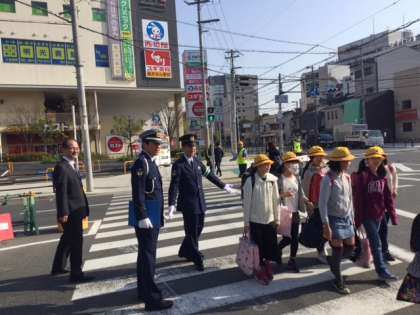春は10日も地域の皆さん、警察署の方たち、もちろんPTAの見守りの皆さんもいっしょに、子どもたちの安全を見守ってくださいました。