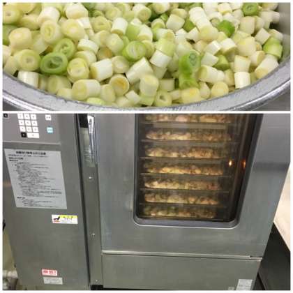 焼きとりは、しょうが汁で下味をつけた鶏肉と白ネギをオーブンで焼き、とろみのあるタレをからめます。甘辛い味付けがごはんによく合います。