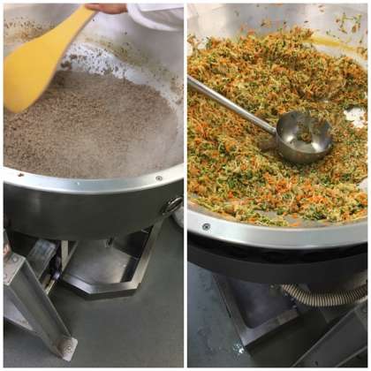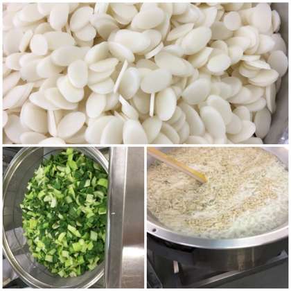 調味液に漬け込んだ野菜と、コチジャンなどで味付けした挽肉をご飯の上にのせていただきます。またトックに入ってるお餅が大人気でした。どれもとてもおいしく、今日も完食していました。