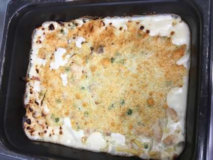 マカロニグラタンは、鶏肉を主材にしたホワイトグラタンです。