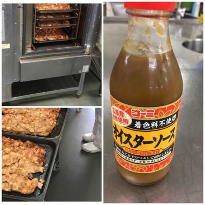 オイスターソース焼きは鶏肉に、しょうが、にんにく、オイスターソース、こい口しょうゆ、サラダ油で下味を付けてオーブンで焼きます。お肉が柔らかく、とてもジューシーで、子供達にも大人気でした。