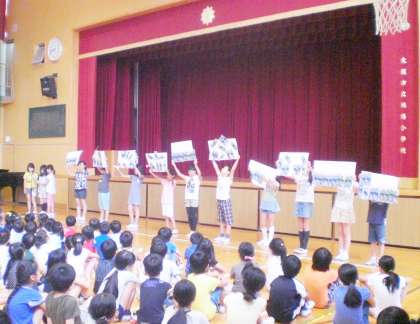 今年度からトイレにはトイレ専用スリッパにはきかえることになったので、毎週月曜の児童朝会で、保健委員会の児童達が、先週のスリッパの整理の状況を写真に撮って、報告してくれています。