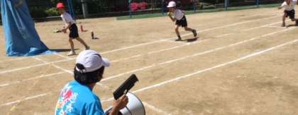 ミュンヘン日本人国際学校の運動会は、学校から何キロか離れたグランドを借りて実施していました。400メートルトラックです。