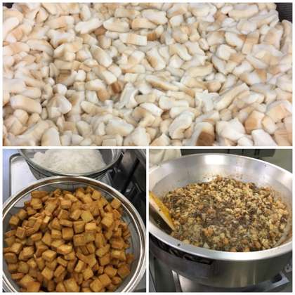 【ふ】の個別対応献立で、アレルギーのある児童には、調理行程で【ふ】を入れる直前に取り分け提供しています。