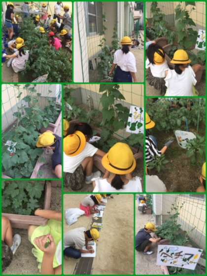 へちま、トマト、ピーマンなどを栽培して観察をします。