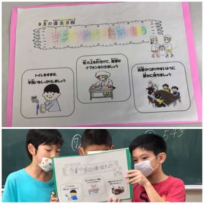 5.6年生の給食委員の人たちが各教室に手作りのポスターを配りに行ってくれました。