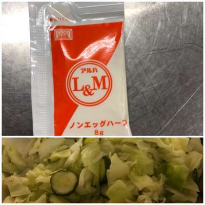 キャベツときゅうりを使用したグリーンサラダには、卵アレルギーの子供たちも食べれるよう、ノンエッグドレッシングをかけていただきます。デザートには旬の果物の巨峰が出ました。