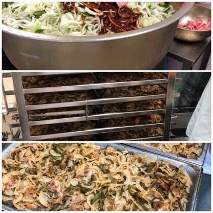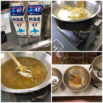 ケチャップ風味焼きは、豚肉、玉ねぎ、ピーマンをウスターソース、ケチャップなどで下味をつけ、オーブンで焼き上げます。「これやったら苦手なピーマンも食べれる」と言う子もいました。デザートには、スイートポテトが登場しました。さつまいも、砂糖、クリーム、バターで仕上げています。