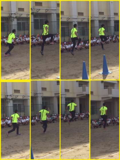 速く走るための練習です。スキップ・・思いっ切り高く飛び上がります!
