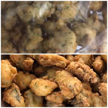 新食品の白身魚のフリッターは、「ホキ」という魚を使用した製品です。衣に青のりが練りこまれ、ほんのりとした塩気がありとても美味しかったです。