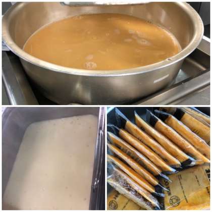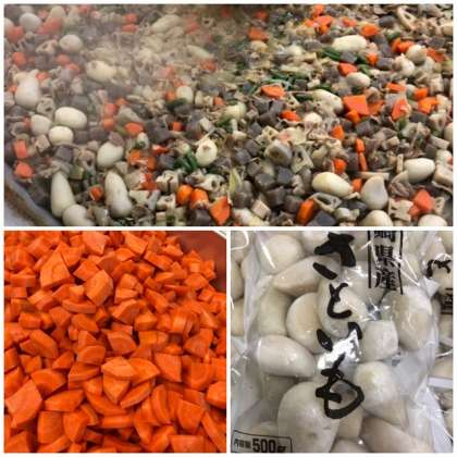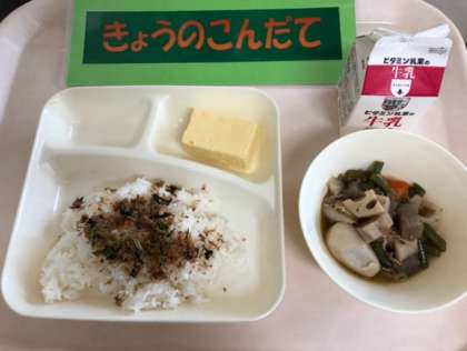 卵どうふは、だしと卵、調味料を混ぜ合わせ、オーブンで蒸します。のどごしも良く、子どもたちに大人気でした。今月から学校給食も「おぼろづき」と言う品種の新米を使用しています。おかかなっ葉は、ごはんによく合いどのクラスも完食でした。