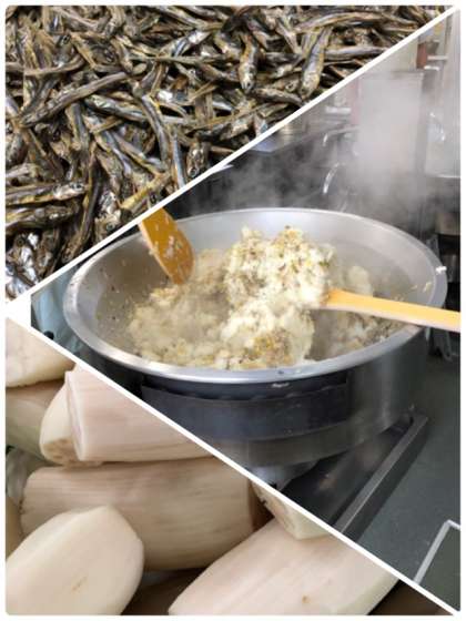 ぞう煮は、白みそを多く使った関西風の汁物です。白玉もちや、なにわの伝統野菜である金時にんじんを具材にすることにより、紅白おめでたい正月らしさを出しています。子供たちにはおもちが大人気だったようで、おかわりしている子がたくさんいました。