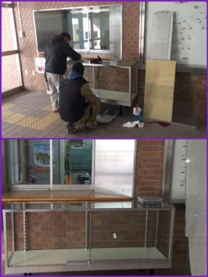 玄関にみんなの栄誉を讃えるガラス張りの棚を置きました。