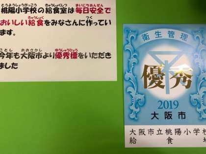 今年も本校の給食室が、特に衛生管理に優れた施設のみに贈呈される「環境衛生並びに食品衛生関係施設優秀標」をいただきました。