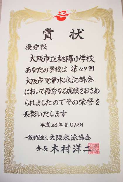 なんと、児童達のがんばりの結果、入賞を果たし優秀校として賞