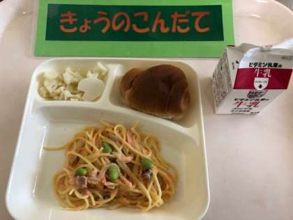 紅ざけの淡い色がきれいなさけのクリームスパゲッティは、子どもたちに大人気で、どの