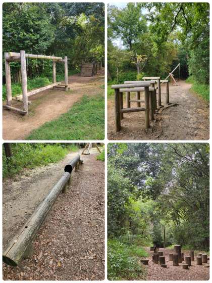 おやつタイムでジュースを飲み、アスレチックでしばらく遊びました。みんな元気に過ごしています。これからキャンプ場を出て、自然の家へ移動します。