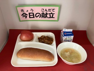 なすのミートグラタンは、なすが苦手な児童でも食べやすい味付けになっていました。旬のりんごは食感がよく甘かったです。