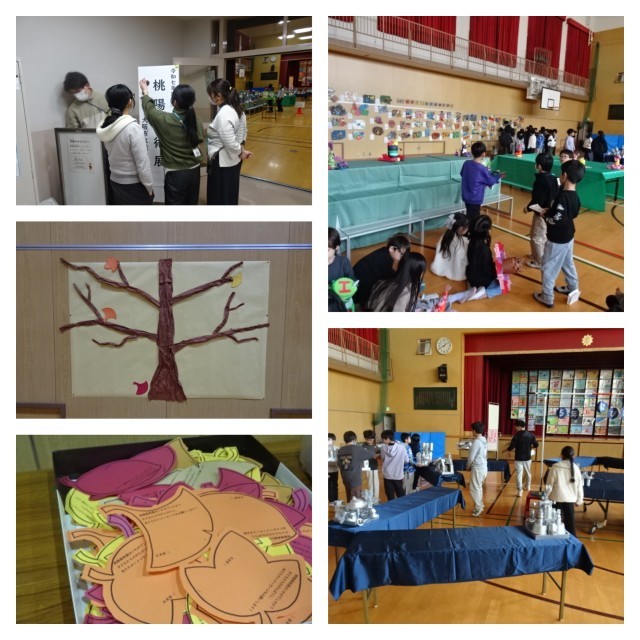 桃陽小学校では、毎年2学期の懇談会に合わせて、『桃陽美術展』を行っています。奇数(1,3,5年)学年が立体作品、偶数(2,4,6年)学年が絵画の作品を展示しています。明日から始まる桃陽美術展に向けて、子ども達も教職員も準備を行いました。子ども達が一生懸命につくった姿を思い浮かべながら作品を見ていただけると幸いです。子ども達の力作の作品の数々が展示されています。楽しみに見に来てください。