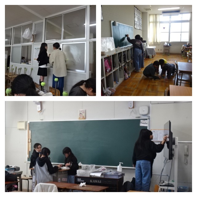終業式が終わった後、各クラスをのぞいて行くと、椅子取りゲームやクイズ大会などをしてみんなでお楽しみ会を楽しんでいるクラスが多くありました。一方、みんなで協力して大掃除をしているクラスもありました。年末はお家でも大掃除をすることと思います。家族の一員として、お家でも活躍して欲しいと思います。