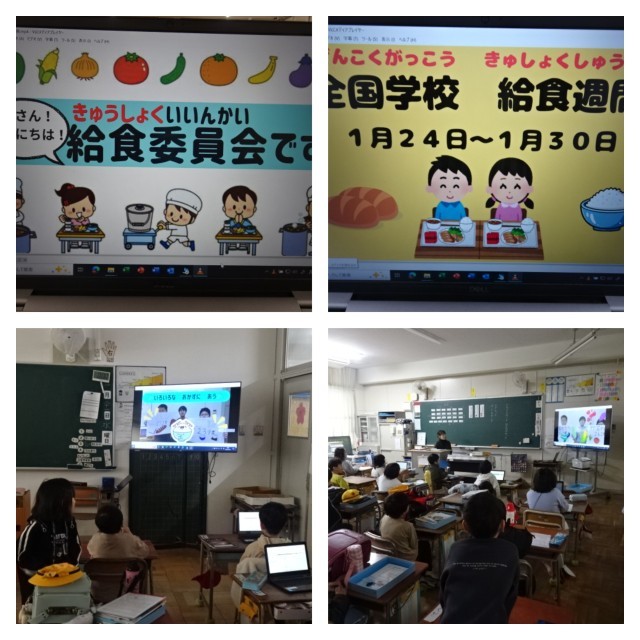 1月20日(水)の児童集会は、給食委員会による発表でした。1月26日から1月30日まで『給食週間』ということで、桃陽小学校の給食に関係するアンケート結果を発表したり、外国の給食について調べたことを発表したりしました。給食の始まりから今日に至るまでの歴史についても調べて発表しました。来週は、いつも以上に給食を味わって食べて欲しいと思います。