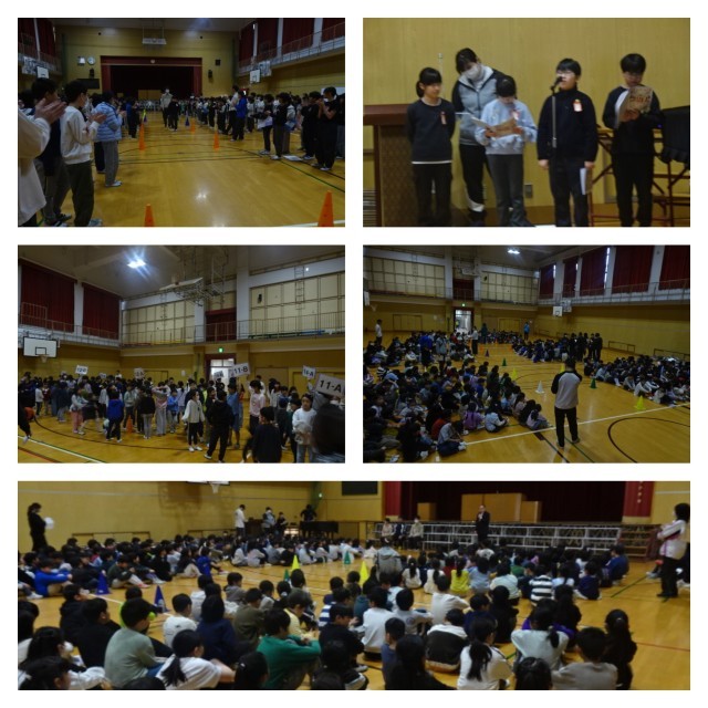 今日は、全校朝会後に6年生のみ教室へ戻り、1年生から5年生全員で、『卒業お祝い集会』のリハーサルをしました。当日の流れに沿って、隊形移動や学年の出し物など、みんなで確認しました。しっかりと話を聞いて考えて動く子どもが多く、予定よりも早く終わることができました。本番の金曜日が楽しみです!!
